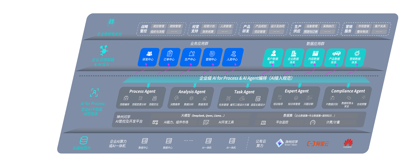 端到端的一站式AI工作空间深度融合了从企业战略规划到日常经营的全流程业务板块,,,,定向解决车企内部领域多、、、部门多、、、链条长、、场景碎片化等难题,,支持车企快速构建以AI为核心的生产力写作体系,,,实现任务执行与AI能力的无缝集成与交互